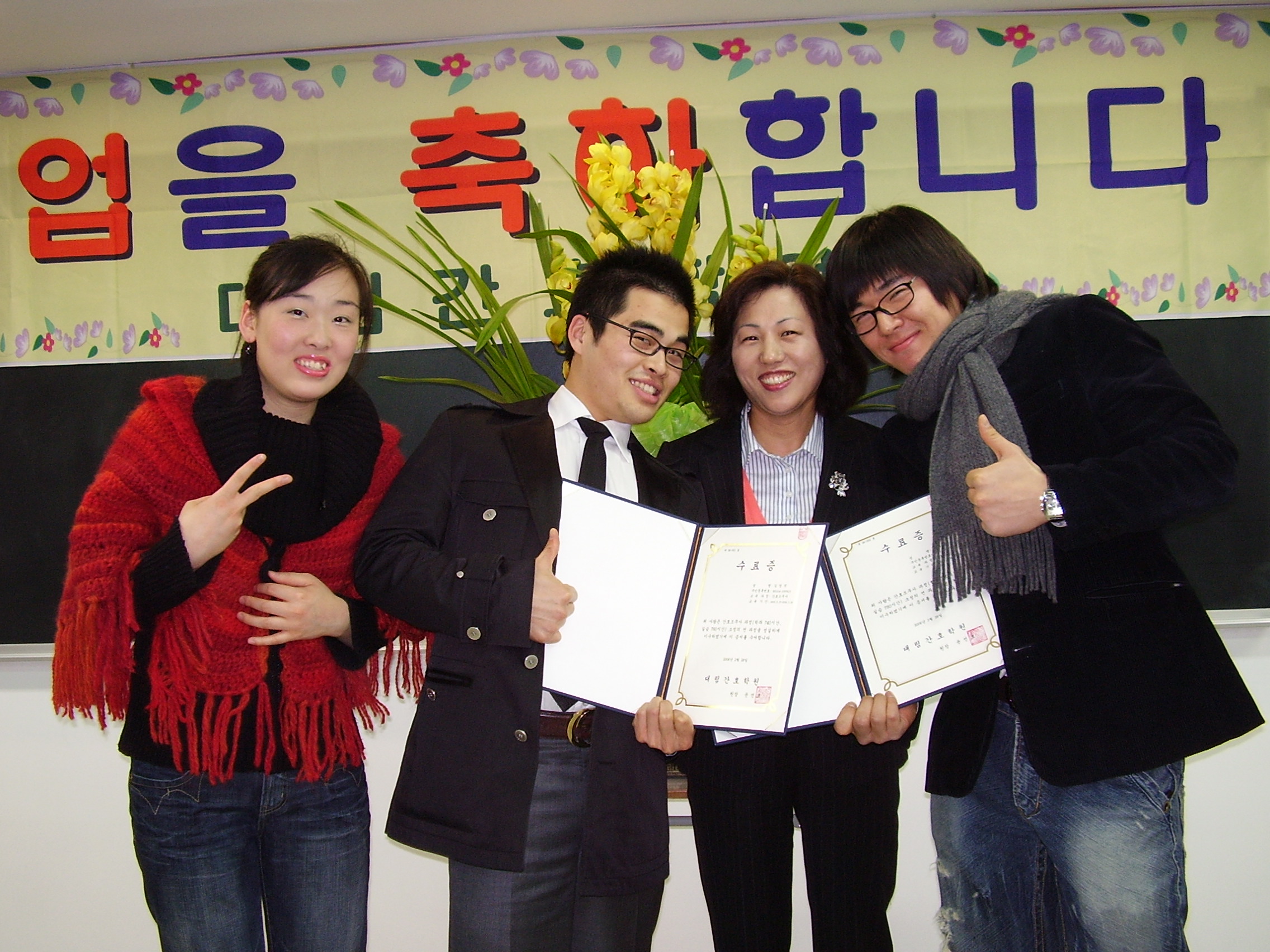수료증을 자랑하고 싶다던 남학생들